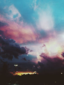 Abstraída en mis pensamientos no miré que sobre el cielo azul se formaban nubes en distintos tonos de rosados con pinceladas azuladas.